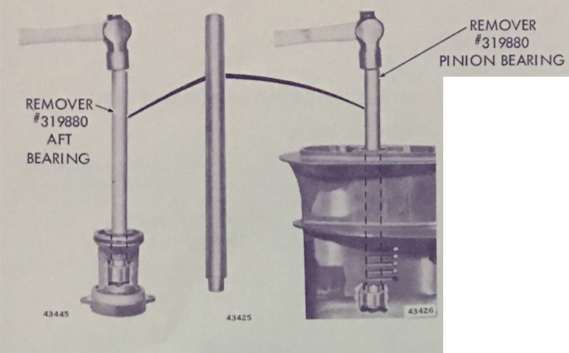 319880 Remover — 9.9/15 Removes upper driveshaft bearing, pinion bearing, and small propeller shaft bearing. REMOVER - BEARING For 1974-77 9.9 and 15 HP. This tool has two uses - it drives the pinion bearing out of the gearcase and it drives the rear bearing from gearcase bearing housing. Made of hardened steel for a long life. |