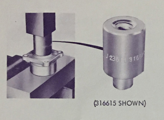 INSTALLER - SEAL For 1975-77 50 and 55 HP; PART NO. 316615 Use these installers with an arbor press or 311880 Drive Handle to install the two oil retainers into the driveshaft bearing housing. These oil retainers are installed back-to-back and must be protected during installation. Using this tool insures that the job will be done correctly.