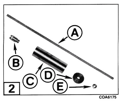 392998 Tilt Tube Puller Removes the tilt tube on outboards — 40 thru V8. (A) 328383 Rod