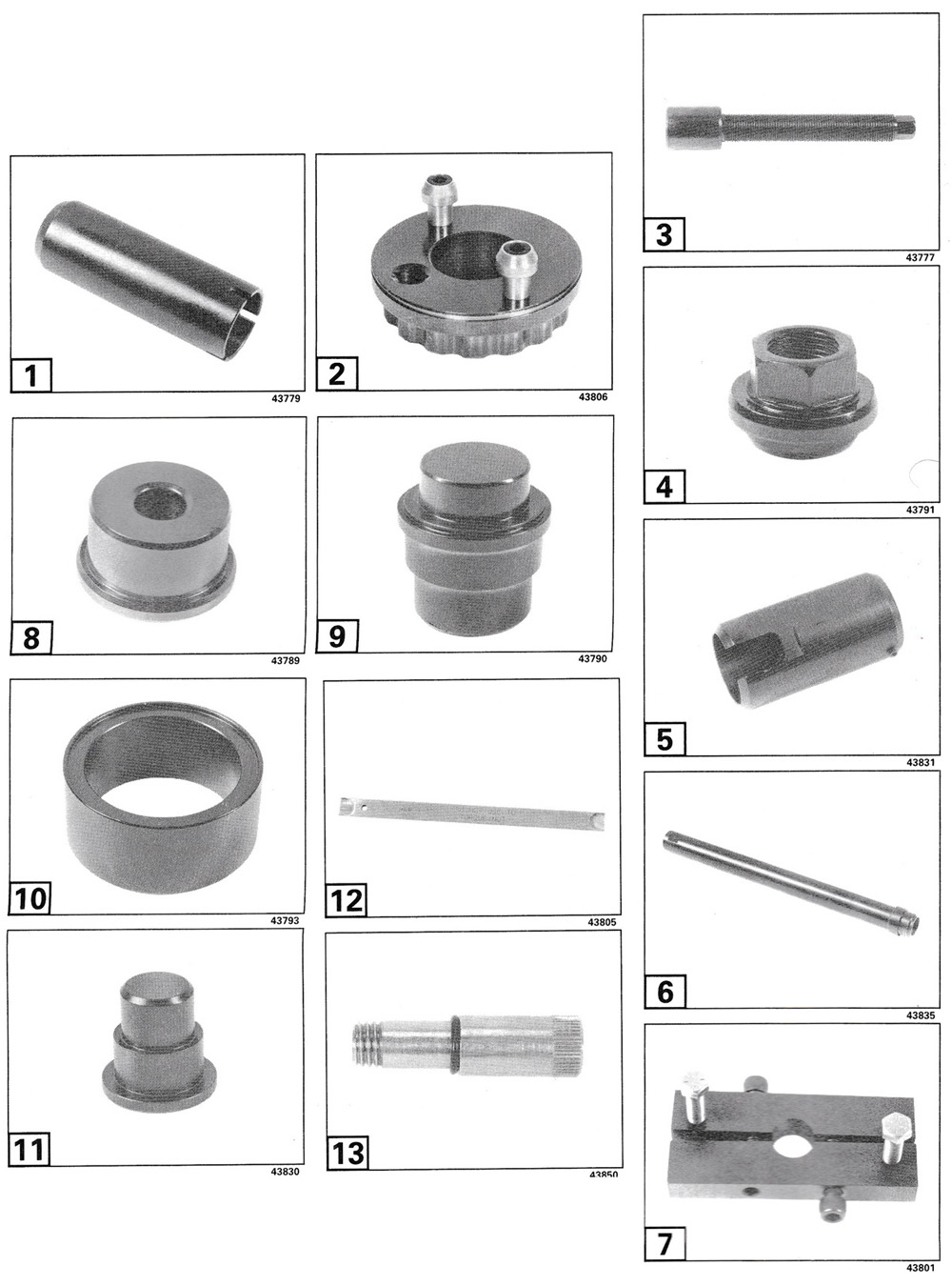 Lower Gearcase — "DP" Dual Prop Service tools (figures 1 thru 13) are available as Service Tool Kit, [1] 3855876 Propeller Remover/Installer |