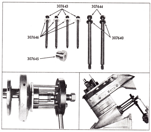PULLER ADAPTER KIT Includes following components which are available separately: Part No. This kit is used with puller No. 378103 to remove the gearcase head and the lower crankshaft bearing on V-4 engines. Screws 309489 are also used to pull gearcase head on 1962 40 HP and 75 HP Electric Shift models. |