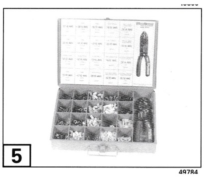 Terminal/Connector Kits 502552 - 21-Compartment Metal Box Kit — Contains 1000 insulated terminals (20 different types) and crimp tool. 502551 - Plastic Box Kit - Contains 120 insulated terminals (12 different types) and crimp tool. |