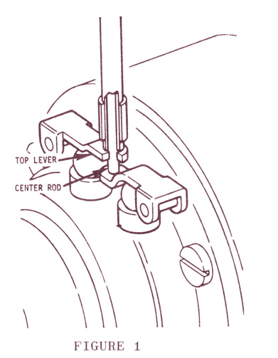 The gearcase castings used on the 50 thru 125 H.P. engines were recently changed to eliminate the cast in funnel shaped shift rod casing guide above the oil pump. With the guide no longer there, you will have to use extra care when locating the solenoid shift rods since it is possible to install them incorrectly. For instance, if the shift rods are installed off center, the gearcase would operate in forward only. After the solenoids are installed and before the cover is installed, check with a flashlight to make sure the shift rods are centered on the lever arms as shown in figure 1.