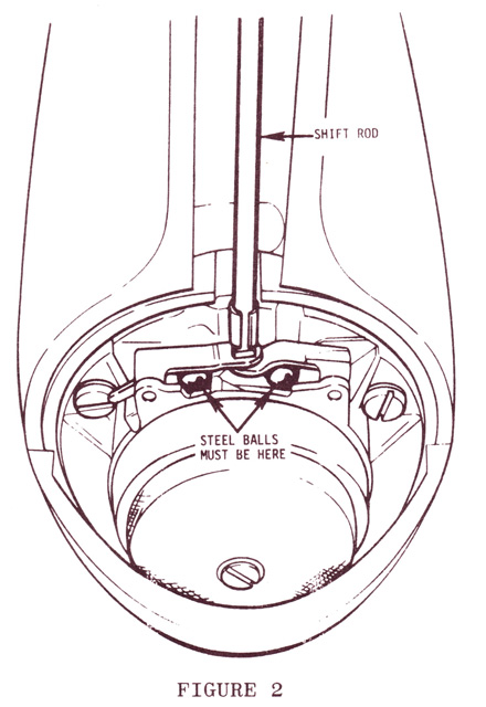 | NOTE: | Before installing the oil pump, make sure the steel balls are in position shown in figure 2. It is possible, through rough handling, for the balls to get jammed under the lever arms making the shift mechanism inoperative. |