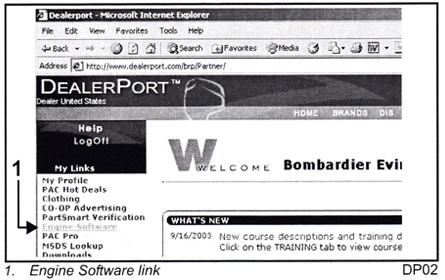 | PROCEDURE  Log into DealerPort. Click Engine Software. After downloading the file and opening it, the unzip program will place the Engine Map files in three lo-cations for use with PDA, EV DIAG, and PDC Diagnostics software. IMPORTANT: Do not change the default path from C:\ when the file is unzipped. If you do not have DealerPort, e-mail a request for the software to bmca.techsvc@brp.com. In the e-mail subject line, you must reference "Software Map 3030334." |