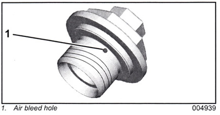 | Drill until the drill bit enters pressure valve passage, through the brass hose fitting.